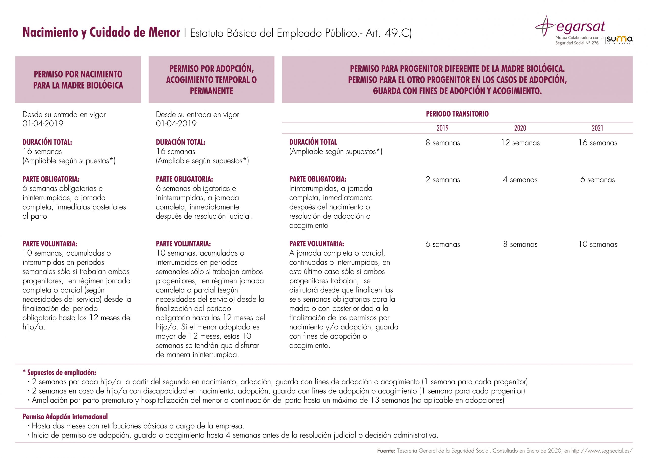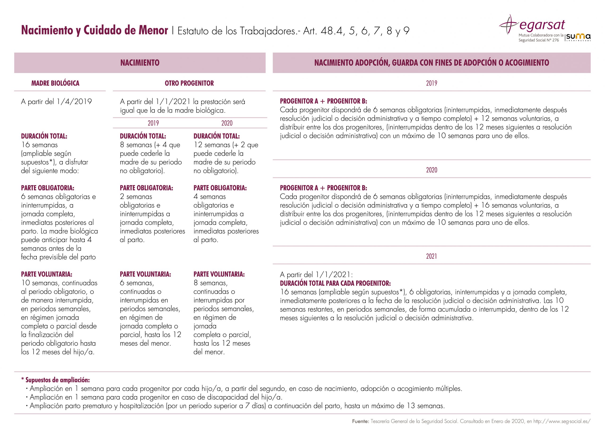 Fuente: Tesorería General de la Seguridad Social. “Nacimiento y cuidado de menor”. Consultado el 9 de enero de 2020